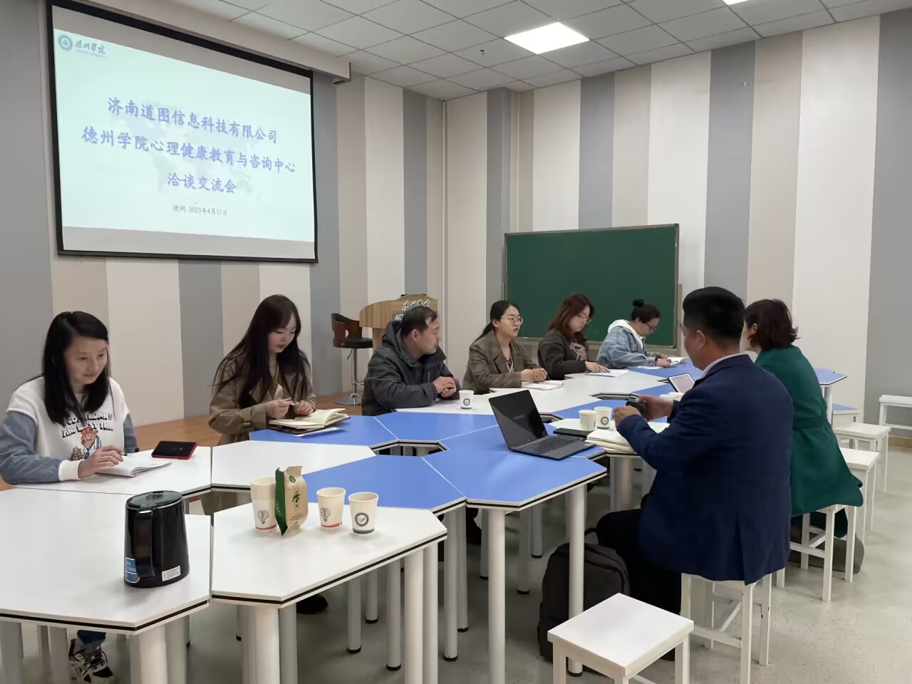 本次交流会在东校心理健康教育与咨询中心团辅室举办,成人在线免费视频副处长周华主持、济南道图信息科技有限公司研发部研发总监张春花和心理健康教育与咨询中心全体教师参加了此次洽谈交流会。