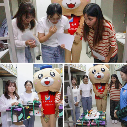 9月19日开学典礼,学校易班为当天过生日的同学送上生日蛋糕和生日祝福,学校师生、易班熊陪伴29名同学一起过生日、写下生日愿望。