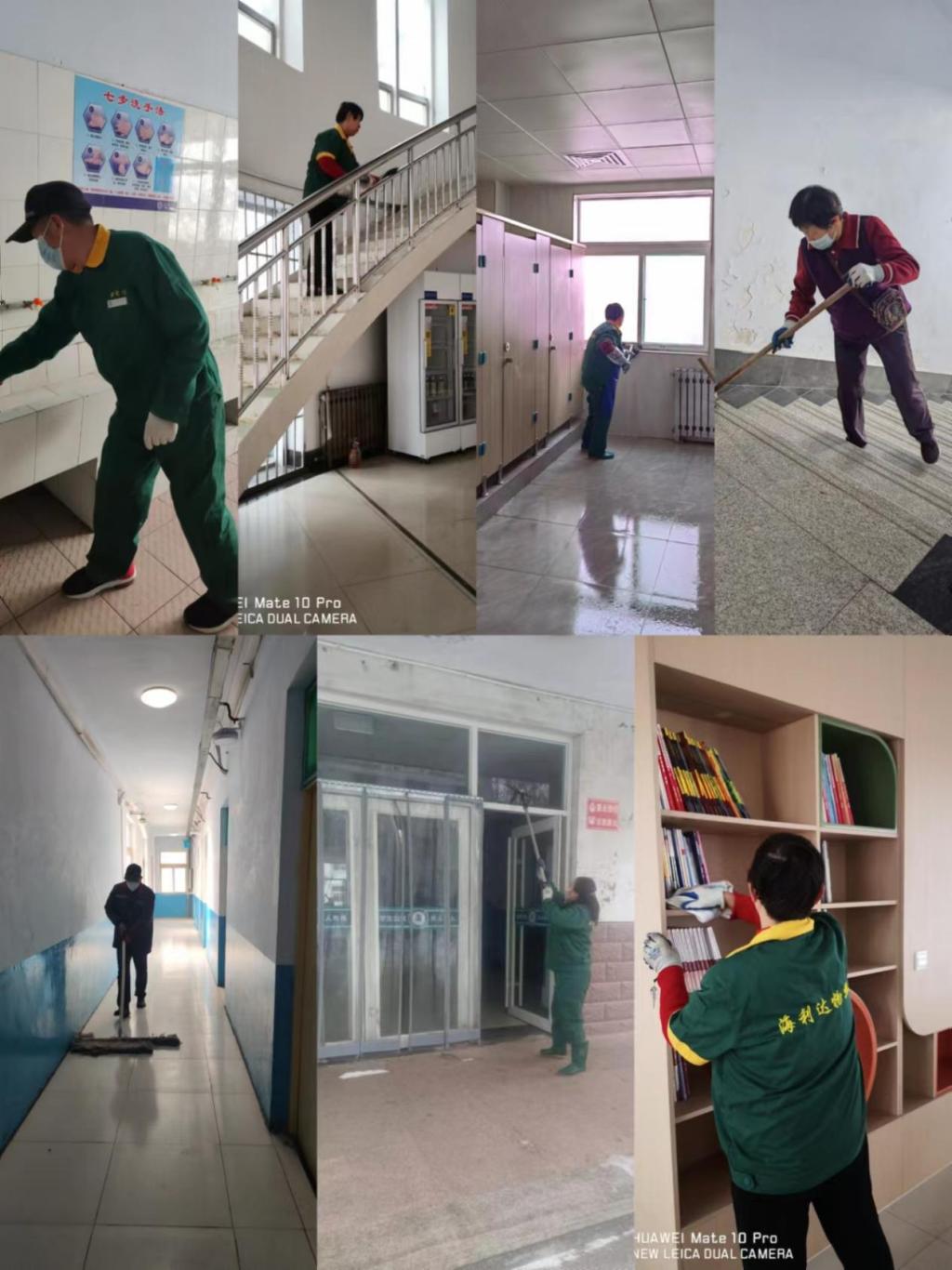 开学在即,为营造整洁、舒适、安全的住宿环境,学生工作处联合保卫处开展楼外积雪清扫、楼内卫生清理和全面消杀,为新学期开学做好准备。