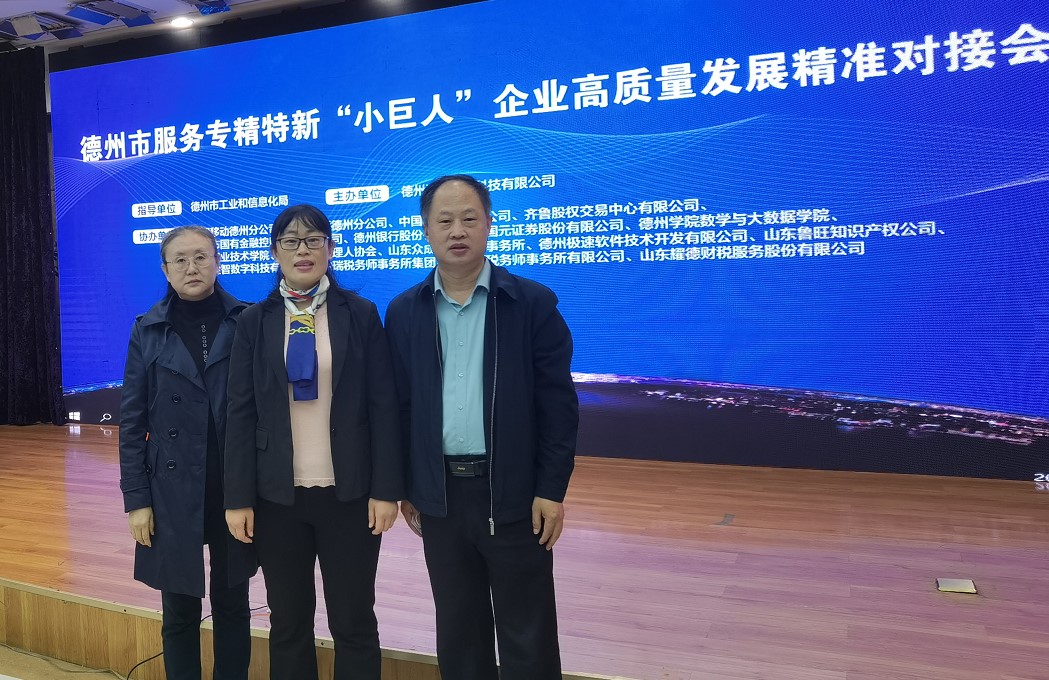 10月15日上午9:00时,在德州市经济开发区凯元温泉酒店召开了“德州市服务专精特新“小巨人”企业高质量发展精准对接会”。数学与大数据学院刘艳芹院长、高秀莲教授与张智广老师参加了会议。德州学院数学与大数据学院作为会议协办单位之一,成为德州市专精特新“小巨人”服务商联盟成员单位。
