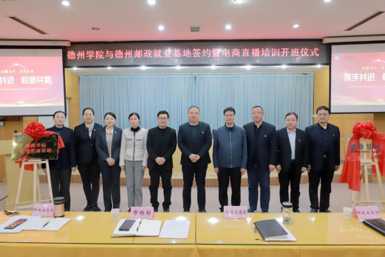 为认真贯彻落实党的二十大精神,深化校企合作,促进产教研融合,扎实开展好就业育人工作,鼓励更多的德院学子扎根德州、服务德州。4月3日,经济管理学院与中国邮政集团公司德州分公司举办“德州学院就业基地、实习实训基地”签约揭牌暨“电商直播培训”开班仪式。学院相关负责人、邮政公司负责人、各部门负责人、电商班学员代表100余人参加了此次活动。