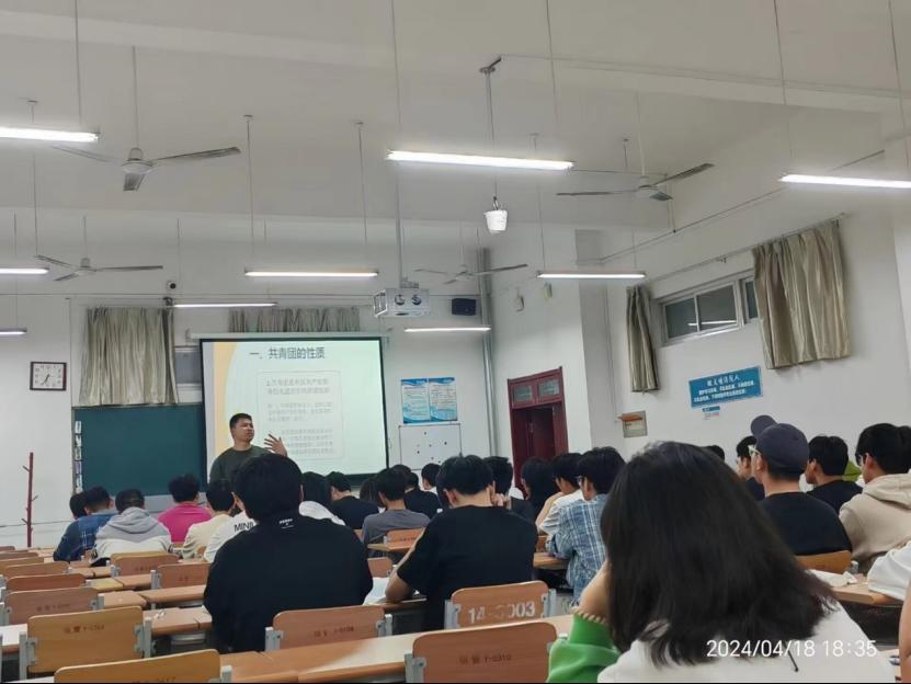 开班仪式结束之后,计算机与信息学院团委书记进行了开班“第一课”。他为学生们讲述了共青团的性质与职能,介绍了共青团的发展史,并详细讲解了团的基本任务。他号召学生们要认真学习和深入了解共青团的历史,明确入团初心,鉴定入团的初心使命,深刻认识新时代青年的使命与担当。