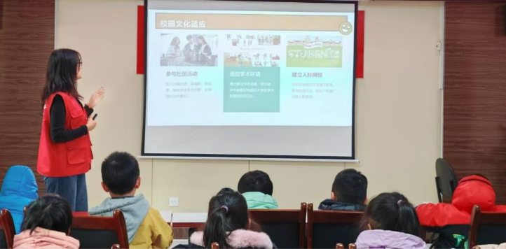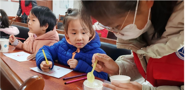 活动伊始,志愿者们借助 PPT 与孩子们分享成长经验,如定位职业规划,应对风险危机等,启发孩子们的学习兴趣。随后,大家引导孩子们绘制自己理想中的“我未来的名片”,鼓励他们说出自己的职业目标,增强自我认同。最后,志愿者和孩子们携手完成“会跳舞的盐”科学小实验,激发孩子们对化学知识的探索热情,让他们领略不同学科领域的独特魅力与挑战。在活动过程中,志愿者充分彰显榜样力量,从知识传授、职业引导到实践操作,全方位地影响并激励着参加活动的小朋友。