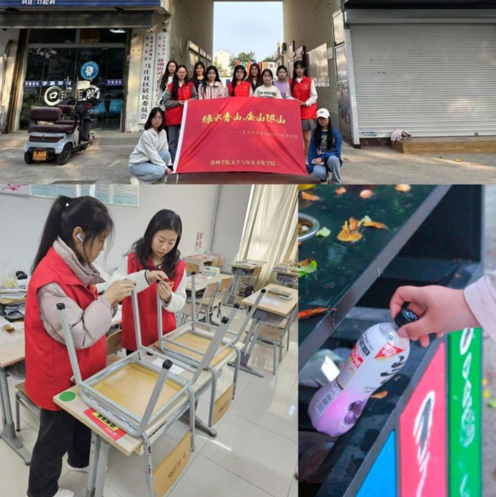 10月29日至12月17日,文学与历史文化学院学生持续行动,绿水青山,金山银山”社会实践、“绿动未来,盒你一起”主题活动、“七天洁舍挑战,共筑温馨寝室”、“共建文明校园,共塑优良学风”、“静心备考,静音支持”等活动,党课取得长效化成效。