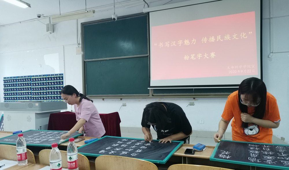 板书是课堂教学的重要组成部分,为了强化在校师范生认真练习粉笔字的意识,切实提高在校师范生的板书技能水平,生命科学学院于9月22日在求实楼0115教室举办粉笔字大赛活动。