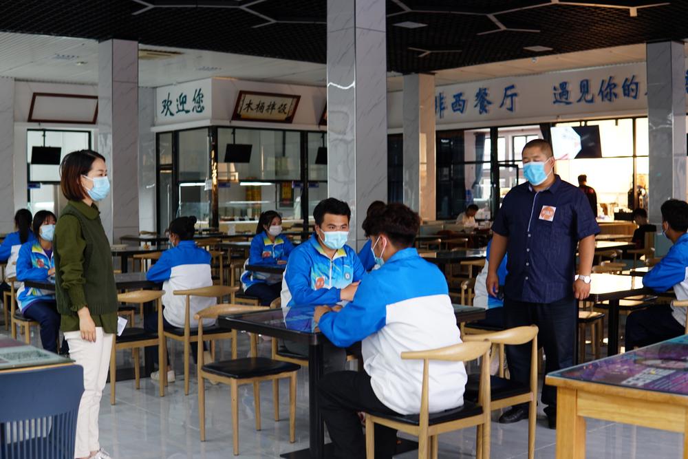 2020级新生集中学习了《德州学院应急处置流程》,演练采取情景模拟和现场演练相结合的方式,由新生志愿者扮演“学生”,2020级辅导员、班主任扮演“辅导员”、“学院疫情防控应急处置联络员”和“场所联络员”等不同角色,模拟演习了学生在教室自感体温异常、学生在食堂自感体温异常及学生在宿舍自感体温异常三个场景下的应急处置流程。