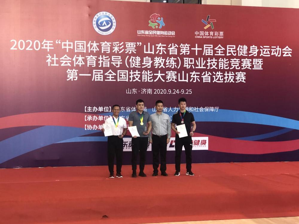 为了推动体育行业复工复产,加快职业技能人才培养,为促进全民健身、发展体育产业和建设体育强省贡献积极力量。山东省第十届全民健身运动会于9月24-25日在济南乐动健身隆重召开。体育学院教师张亚舟参赛,并荣获山东省第十届全民健身运动会健身教练项目暨第一届中华人民共和国职业技能大赛山东省选拔赛的冠军,并将作为山东省的代表参加全国第一届职业技能大赛。