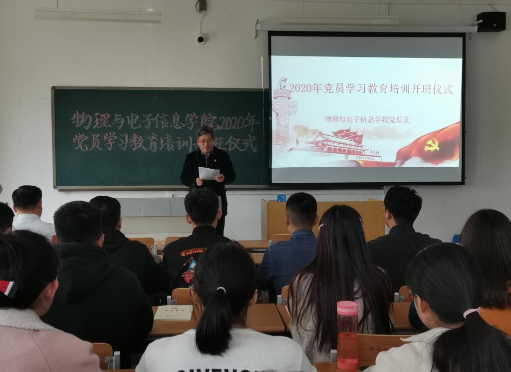 为进一步加强基层党组织建设,做好党员教育管理监督,切实发挥党建工作在高校教书育人中的引领作用,11月3日下午,物理与电子信息学院在明理楼0215教室召开党员集中培训动员部署会暨开班仪式,学院全体师生党员参加了活动。活动由学院党总支负责人主持。