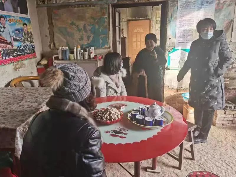 临走的时候,获知郝同学的父亲原来是一名老退伍军人,大家向老人表达了深深的敬意,老人爽朗地笑着。董书记代表学校领导师生转达了慰问之情,并将年货递到老人手里,也将祝福提前送达。