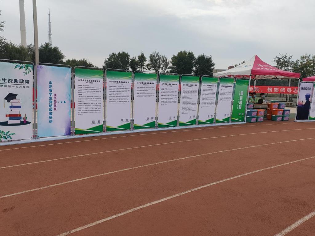 为进一步做好2022年新生入学学生资助政策展板宣传工作,我校自行设计了政策宣传展板,并由学校党委宣传部审核把关后进行了印制。新生入学当天在绿色通道现场进行了精心布置。