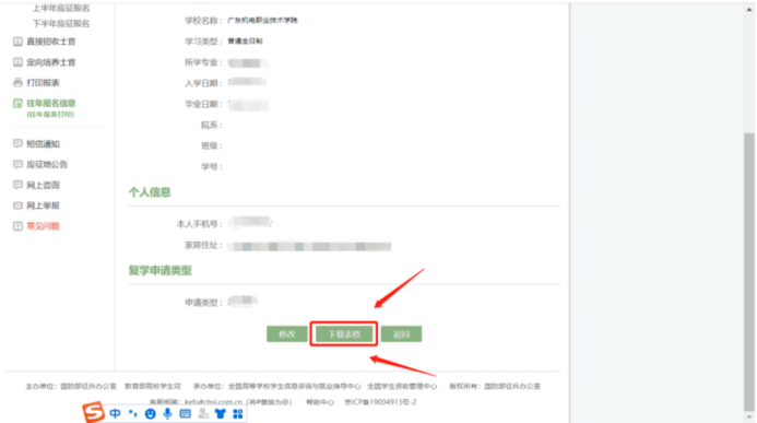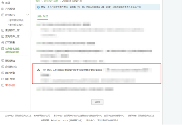 跳转后点击下载《应征入伍服兵役高等学校学生国家教育资助申请表Ⅱ》