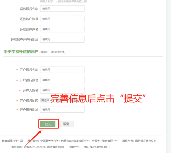 注意:银行卡信息必须是本人银行卡,若不是建设银行,银行名称必须具体到开户支行,对学费不清楚的一定要和财务核对。