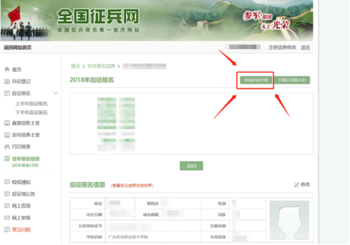 点击页面右部分的“应征报名(男兵)”(女兵选“应征报名(女兵)”);
