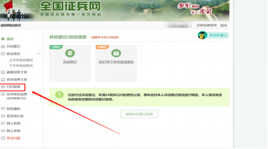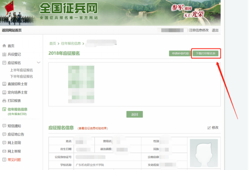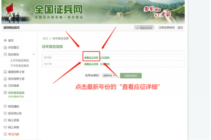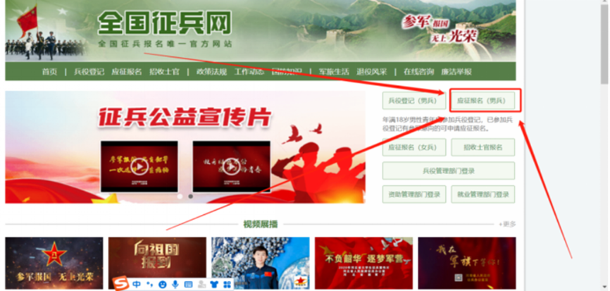 点击页面右部分的“应征报名(男兵)”(女兵选“应征报名(女兵)”);