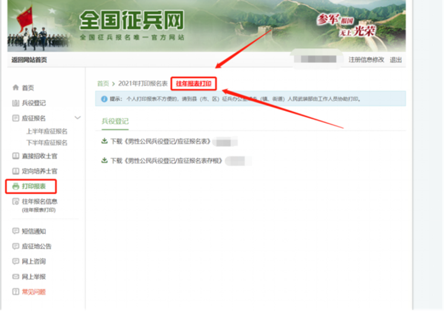 账户信息只能写学生本人的银行卡信息(非建行卡需具体到支行),提交完成后,点击页面左侧“往年报名信息”,点击页面右上方“下载打印报名表”;