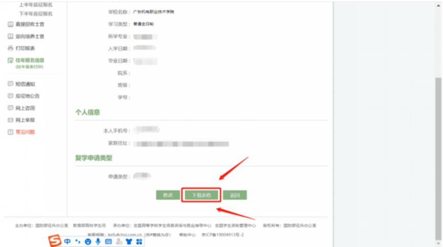 跳转后点击下载《应征入伍服兵役高等学校学生国家教育资助申请表Ⅱ》;