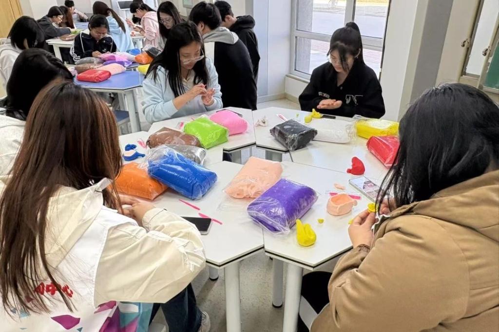 活动伊始,主持人介绍活动流程及参与规则,然后同学们分组展开“心灵创想”太空泥塑造环节。随后在工作人员的协作下,各小组集思广益,默契配合,将创意融入作品,成功捏造了花样百出的泥塑形象。在舒缓的音乐中,同学们卸下生活的疲惫与压力,全身心投入到太空泥的创造中,现场洋溢着轻松愉快的氛围。活动尾声,大家欢聚一堂,手持自己精心创作的太空泥作品合影留念,主持人进行活动总结,此次活动圆满完成。