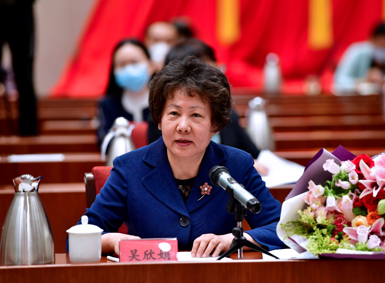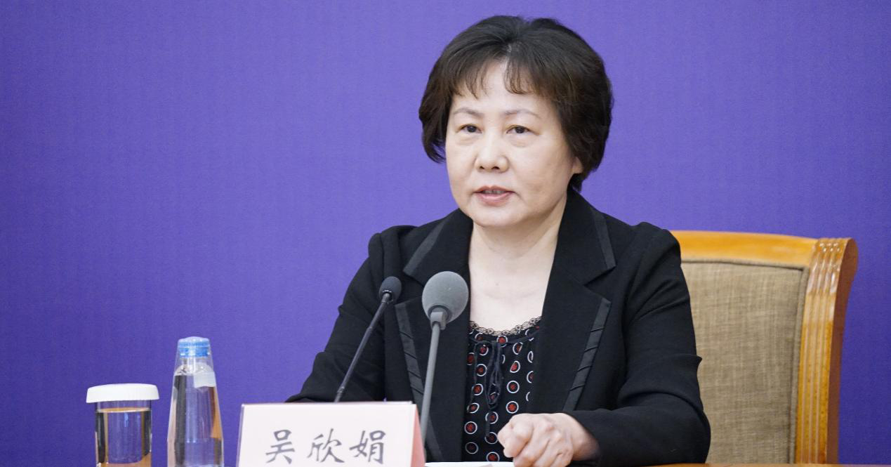 吴欣娟在国务院联防联控机制新闻发布会上发言 (央视网记者 刘亮/摄)