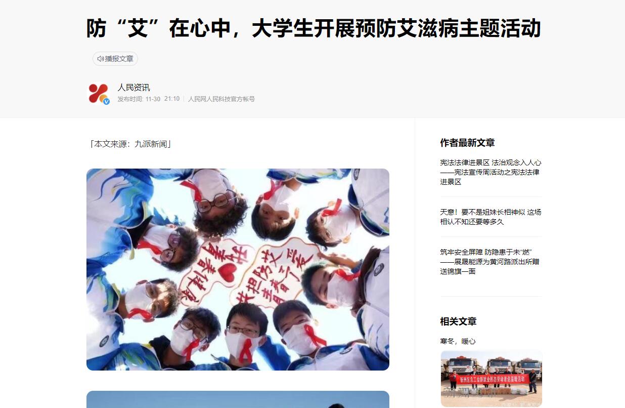 【人民网】防“艾”在心中,大学生开展预防艾滋病主题活动