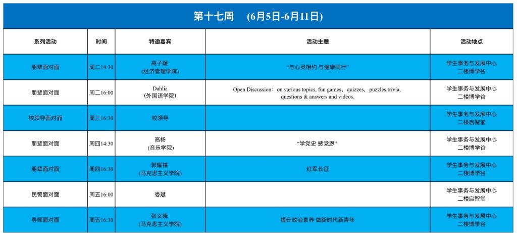 学生事务与发展中心第十七周活动预告