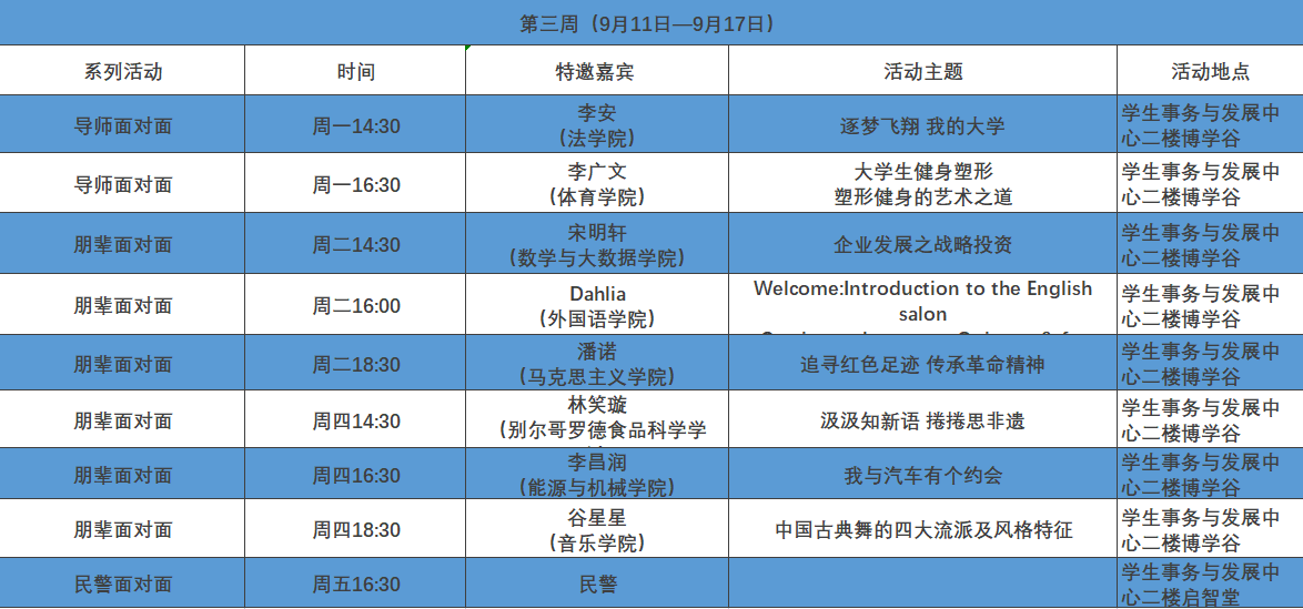 学生事务与发展中心第三周活动预告