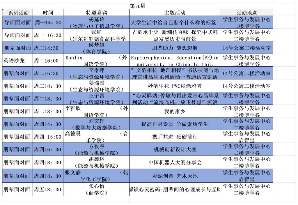 学生事务与发展中心第九周活动预告