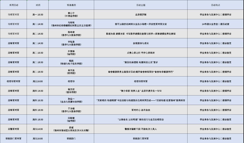 学生事务与发展中心第十六周活动预告